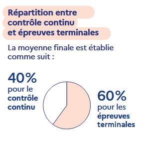 – Un nouvel équilibre est également instauré entre contrôle continu et épreuves terminales : ces dernières comptent désormais pour 60 % de la note finale (contre 50 % actuellement), tandis que le contrôle continu représente 40 % (contre 50 % jusqu’alors).