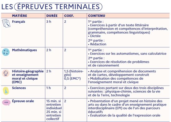 Pour les candidats scolaires, l’obtention du diplôme national du brevet (DNB) repose sur les moyennes annuelles de toutes les disciplines obtenues en classe de 3e et cinq épreuves obligatoires passées en fin du cycle 4 (classe de troisième).