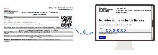 À partir de la fiche de liaison fournie par l’école de votre enfant, vous avez 2 possibilités pour accéder à l’application Cap Sixième :