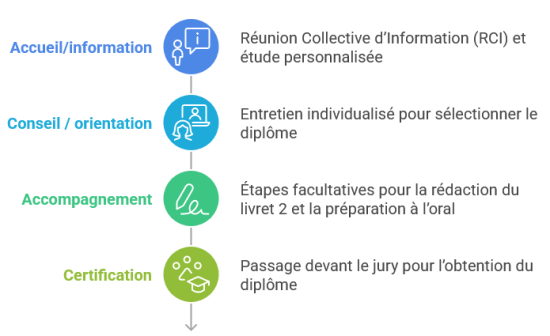 Le DAVA (dispositif académique de la validation des acquis de l’expérience) vous accompagne dans votre démarche.